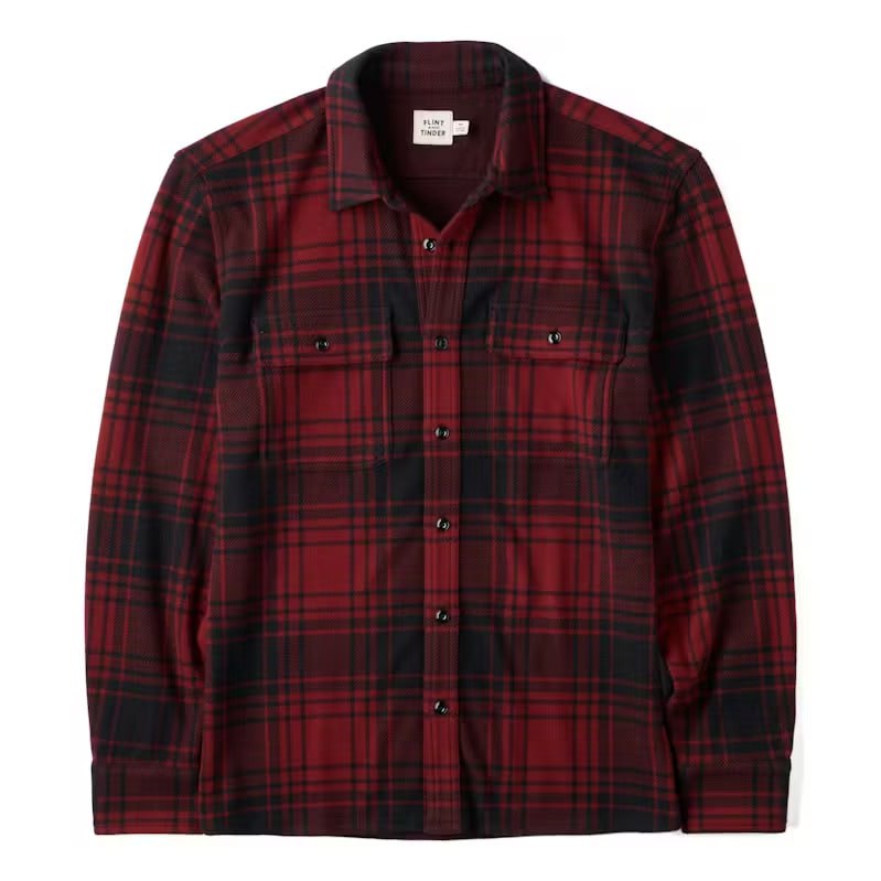 Upgrade your wardrobe with our Bestseller Stretch Knit Flannel. Unlike traditional stiff flannels, this shirt is crafted from a specialized knit fabric that offers incredible four-way stretch and a buttery-soft feel. Designed in a rich Brick Plaid, it brings a warm, rugged aesthetic to your everyday style without sacrificing mobility.